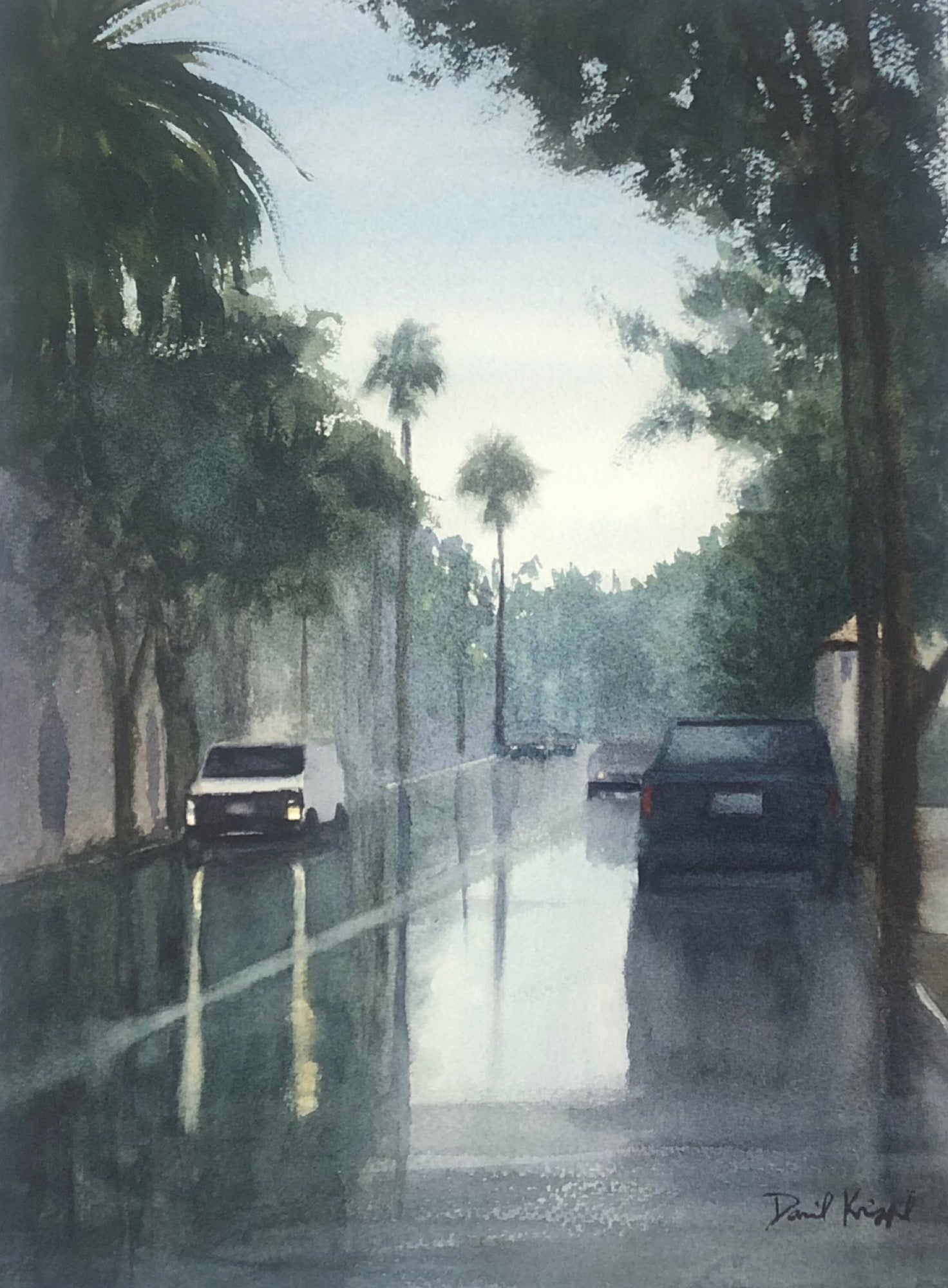 "Rainy Day Reflections in Santa Barbara" - Watercolor - Paper - 11 x 15 - Not for Sale (NFS)